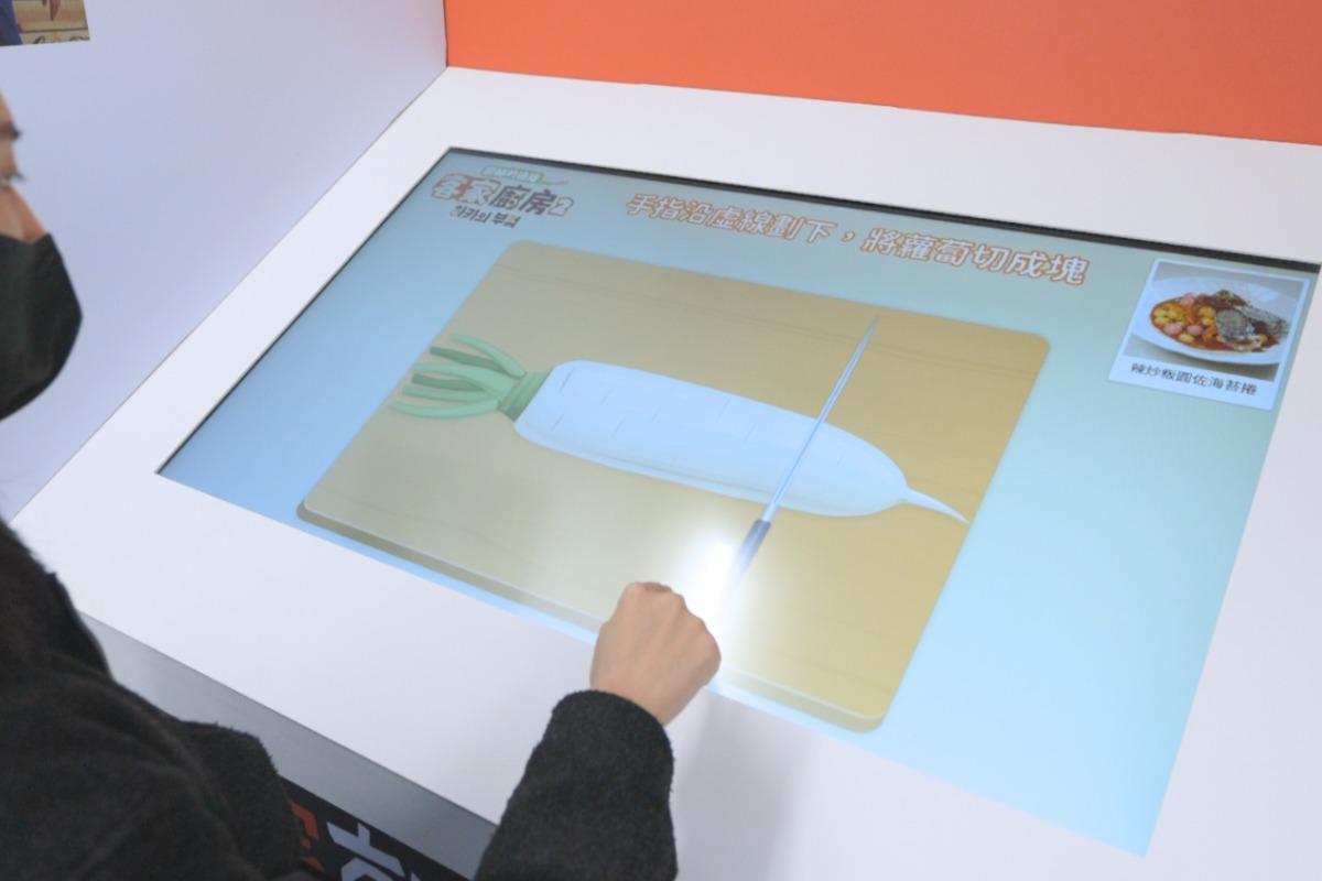 透过触控互动,能够体验、切菜、搓汤圆等步骤,制作专属料理。