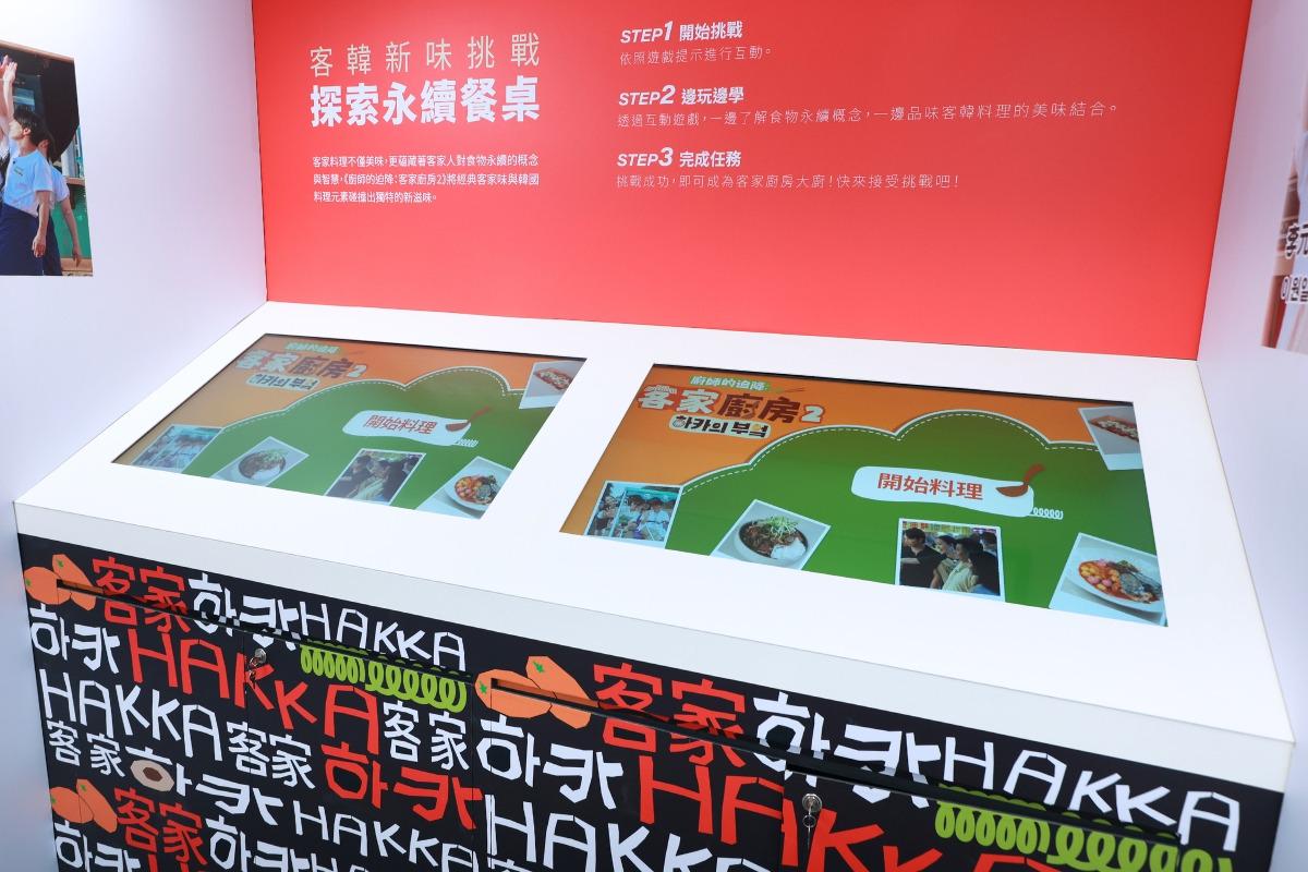 货柜屋中设有互动永续餐桌,让民众了解客韩料理特色。