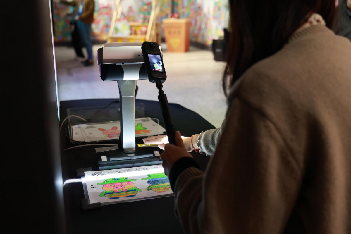 透过 AI 扫描技术,观众可将自己的创作即时转化并投影于光凋牆上。