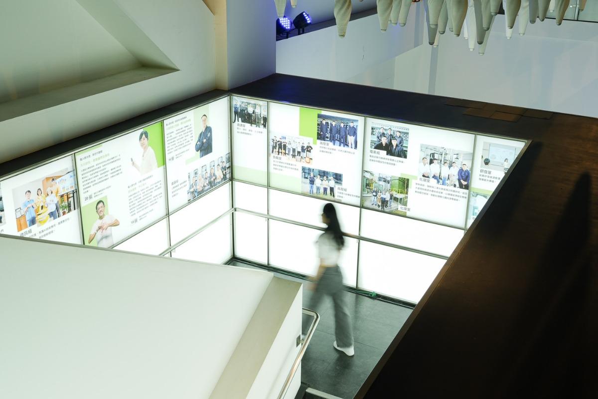 展墙以灯条、萤幕、图文展板呈现亮点技术、美感设计增添资讯易读性。