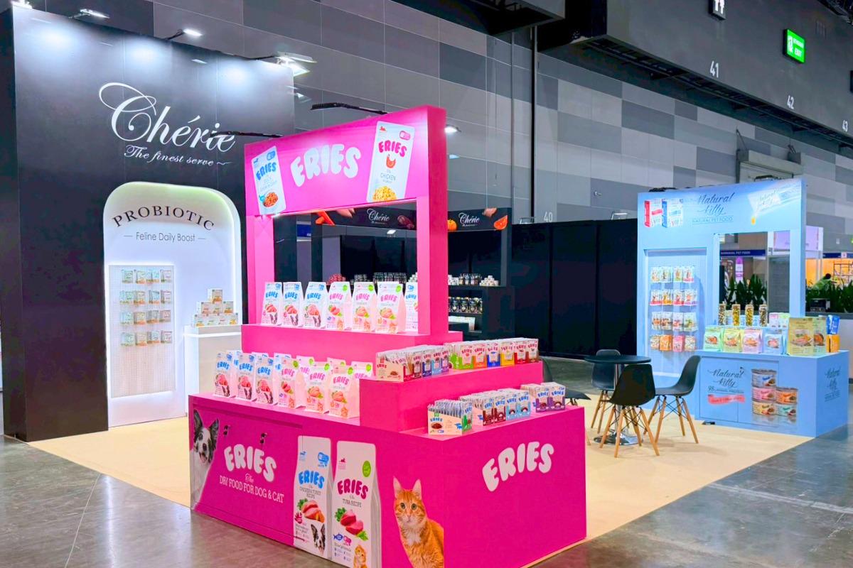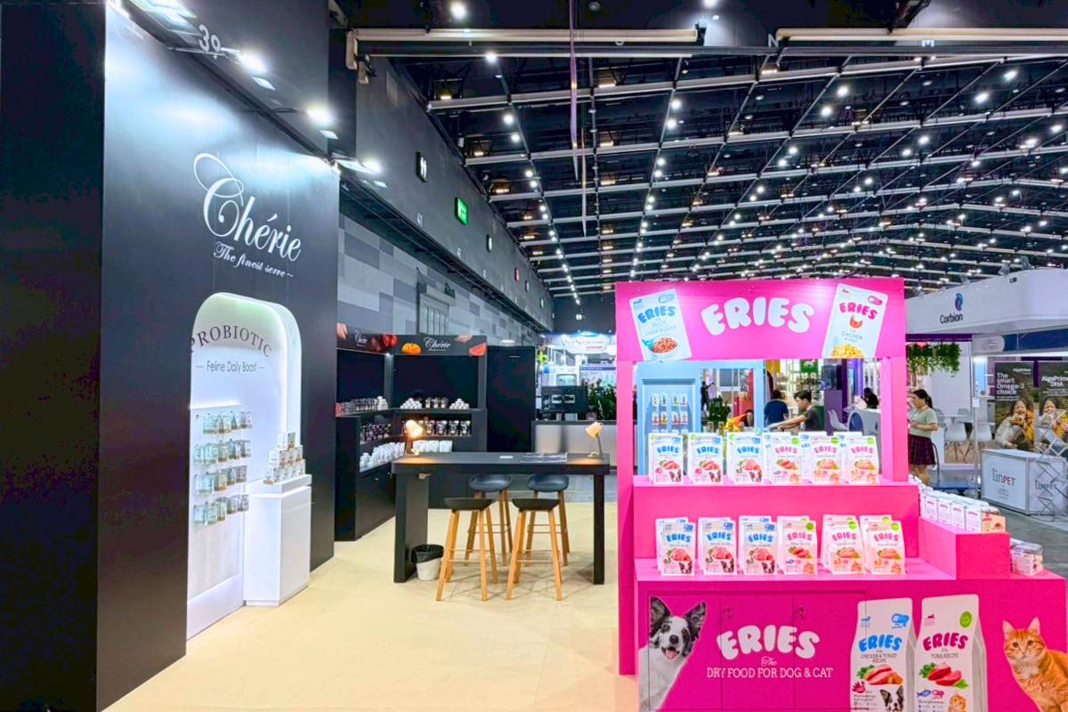 2025 东南亚宠物展 (Pet Fair SE Asia) 于泰国曼谷 BITEC 展览中心盛大开展,今年已迈入第四届。王一设计为客户 Pettric 派脆客 规划展位设计,运用造型展柜与鲜明色彩,让产品分区清晰且陈列有序,提升品牌呈现效果。